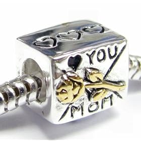 Gold on Sterling Silver Love You Mom Mother Heart Rose Flower Letter Bead for Pandora Troll Biagi Chamilia European Charm Bracelets: Jewelry. It is compatible with Pandora, Troll, Chamilia, Biagi, and other Italian jewelry.