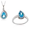 Sterling Silver Pear Blue Topaz Ring, Pendant Necklace and Earrings Diamond Box Set: Jewelry. Resting from an 18-inch cable chain is a bold pear-shaped blue topaz stone. Celebrate her December birthday with the Sterling Silver Pear Blue Topaz Pendant Necklace and Earrings Diamond Box Set. The prong-set stone is wrapped in a sterling silver link that travels around the chain, embellished in natural white diamonds.