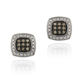 Sterling Silver 1/5ct TDW Champagne Diamond Square Earrings