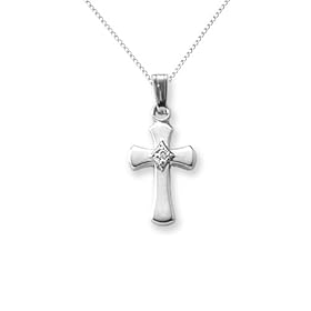 Sterling Silver Childrens Diamond Cross Pendant, 15: Jewelry. Gracefully placed at the bottom of a 15-inch curb chain is a polished cross-shaped pendant. A charming and timeless pendant that makes a great start to any child's jewelry collection, the Sterling Silver Children's Diamond Cross Pendant is a thoughtful gift idea. The 0.8-inch by 0.35-inch pendant contains a diamond shape in the center that is embellished with bead-set natural stones.
