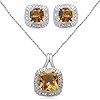 Sterling Silver Citrine Lever Back Earrings and Pendant Set, 18