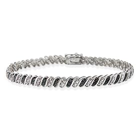 Sterling Silver Black Diamond Accent San Marco Bracelet: Jewelry. There is one genuine black diamond set among the pave design. Accentuate your look with this exquisite polished San Marco bracelet. The bracelet showcases black and white dotted pave detailing creating the look of shimmering black and white stones. Bracelet is crafted of sterling silver and secured with a box and safety latch.
