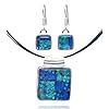 Sterling Silver Dichroic Glass Blue Bar Necklace and Earrings Set, 18: Jewelry