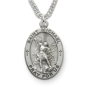Sterling Silver 7/8 inch Oval Engraved St. Michael, Patron of Police Medal on 24 inch Chain: Jewelry. Antiqued Finish Engraved St.