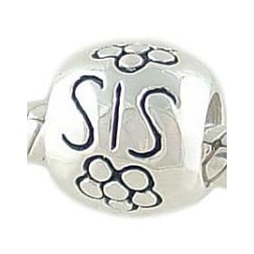 Sterling Silver SIS with Flowers Sister Bead for European Charm Bracelet: Jewelry. Perfect for a sister or a friend. Sterling silver Sis bead charm with flower decoration. Compatible with major brands such as Pandora, Biagi, Ohm Beads and many more. Measures 9mm x 8mm.
