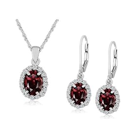 Sterling Silver Garnet Lever Back Earrings and Pendant Set, 18: Jewelry. The pendant presents on an 18-inch rope chain while the dangle earrings are finished with curved earwires and leverback closures. Add a rich sparkle to your style with this beautiful pendant and earring set, featuring faceted ovals of deep red garnet in decorative sterling silver frames. Radiant garnet is January's birthstone and a gemstone associated with faithfulness, truth, and sincerity.