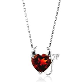 Sterling Silver CZ & Garnet Heart Devil Pendant with 18 inch Chain: Jewelry. Pendant sparkles with heart shape garnet and CZ. This heart pendant is as unique as it is beautiful.