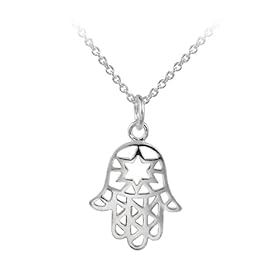 Sterling Silver Hamsa and Star of David Pendant, 18