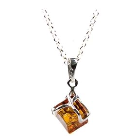 Sterling Silver Honey Amber Cubical Pendant, 18