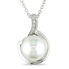 Sterling Silver FW Pearl and Diamond Pendant: Jewelry