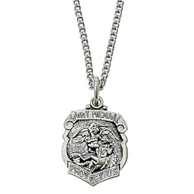 5/8 inch Sterling Silver Police and St. Michael Shield Medal Necklace on 18 inch Chain: Jewelry. 5/8 inch Sterling Silver Engraved Shield and Antiqued Police Medal Necklace with St.