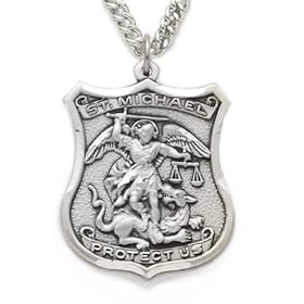 Sterling Silver 1 1/8 inch Shield Engraved St. Michael Medal on 24 inch Chain: Jewelry. Sterling Silver 1 1/8 inch Sheild Engraved St.