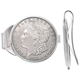 Sterling Silver Spring Back Morgan Dollar Money Clip (1878 - 1921): Jewelry. It is plain & very well polished with some room at the back side for engraving. This Spring Back MONEY CLIP is Solid Sterling Silver, made in The USA, w/ Excellent Quality. There is also a screw on the bezel for easy removal of the coin.