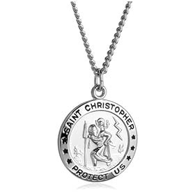 Sterling Silver and Stainless Steel Round St. Christopher Medal, 20: Jewelry. A classic medallion pendant crafted in 925 sterling silver and stainless steel material.
