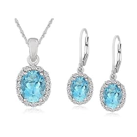 Sterling Silver Blue Topaz Lever Back Earrings with Pendant Set, 18: Jewelry. Each faceted oval of blue topaz is mounted in a four-prong setting and framed by a fancy textured silver border. Ethereal blue topaz, December's birthstone, stars in this elegant pendant and earring set, made from 925 sterling silver.