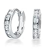 Sterling Silver Cubic Zirconia Hoop Earrings (0.6 inch Diameter): Jewelry. The stones are held securely in prong settings with polished prong tips. Seven round-cut cubic zirconia stones add sparkle to these small hoop earrings, crafted from polished sterling silver. The earrings have a hinged design and are set on posts with hidden snap closures for a seamless look.