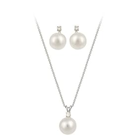 Sterling Silver Simulated Pearl with Cubic Zirconia Top Earrings and Pendant, 18, Set: Jewelry