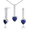Sterling Silver Rhodium Finish Trillion Cut Sapphire Pendant Earrings and 18 inch Necklace Set: Peora: Jewelry