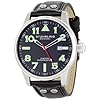 Stuhrling Original Mens 141.33557 Sportsmans Eagle inch Swiss Quartz Date Watch: Stuhrling Original: Watches. The black stainless steel bezel and black leather strap with orange contrast stitching and silver-toned rivets enhance the look of this masculine timepiece. With a bold look and well-designed features, the men's Eagle watch by Stuhrling is sleek enough for stylish urban wear and rugged enough for tough, real-world use. The 44-millimeter black stainless steel case has an appealing circular design, and the black dial features big, easy-to-read luminous indexes consisting of orange-tinted Arabic numerals, bars, and a distinctive triangle at 12 o'clock. All three of the orange hands offer luminous tips, and the dial's outer edge has additional indexes to mark the seconds, with a handy date display at three o'clock. The band closes with a secure buckle clasp, and the dial window is made of synthetic sapphire for extra durability.