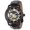 Stuhrling Original Mens 228.33151 Brumalia Boardroom Mechanical Black Dial Watch: Watches. The real star of the Brumalia, the large oversized mechanical movement is laced with hand-engraved scrollwork and dotted by blued steel screws and ruby jewels. The Brumalia is the Roman feast commemorating the temple of Saturn and was celebrated during the space of thirty days, commencing on November 24th. A Brumalian festival included drinking, merriment, and prophetic indications were taken of the prospects for the remaining part of the winter… Stührling Original proudly presents from the ever-fashionable Labyrinthian Series, and following in the footsteps of the Saturnalia, one of the most celebrated watch-models in Stührling’s history, the Brumalia, a skeletonized pure mechanical timepiece! Marked by its spectacular 45-milllimeter round case with its intricate double-milled bezel, the Brumalia offers a veritable feast of clairvoyance into the art and tradition of horological wonders. Peering through the slightly domed looking glass made of Krysterna™, you will be astonished by the inner-workings of the colossal 17-jewel “pure” mechanical engine revealed by the skeletonized dial. With its extra large main-spring clearly visible at the five o’clock position and the oversized balance wheel beating in all its glory at the rate of 18,000 vibrations per hour for all to see, the mesmerizing aura of Brumalia is accentuated by hand-engraved scroll-work on what little remains of the engine plates. Strengthening its persona is the striking bridge on the left side of its face arching across the small-seconds sub-dial. And rounding out the facial look of Brumalia are the individually applied Arabic numeral hour-markers and the sharply skeletonized Dauphine style hands. The dessert for this feast is the perfectly appointed onion-style crown flanked by box-like guard rails makes for the ideal companion to this masterpiece case! The exquisite look of the skeletonized and decorated movement in concert with the refined double milled step-design bezel makes the Brumalia a dressy and elegant timepiece fit for any formal gathering. In addition to its striking presence, the Brumalia represents an anomaly for Stührling Original in that it hosts a “pure mechanical” movement (caliber ST-90911)! There is no rotor attached to the movement providing “self-winding.” The Brumalia epitomizes watch-making the old-fashioned way…you must manually wind the crown to keep it running; but have no fear, the spectacular 17-jewel mechanical engine that powers this festival on your wrist can hold more than thirty hours of power reserve on its large mainspring. Once you’ve completely taken in the look of Brumalia from the front and have been sufficiently impressed, just flip it over and take a look from the back! Talk about mesmerizing, the view through the Krysterna™ crystal in the screwed in exhibition case-back is truly breath-taking. Water-resistant to fifty meters, the Brumalia is mounted on a 24-millimeter wide alligator embossed genuine French leather strap appointed with a push-button dual deployant clasp.