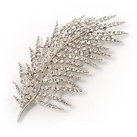 Stunning Large Crystal Leaf Brooch: Jewelry. It measures about 90mm x 45mm and secures with a flag pin and revolver style fastener. No amount of words or images could do justice to the sheer beauty of this amazing oversized statement brooch. Featuring an exquisite leaf design, encrusted in shimmering clear crystals. Crafted in rhodium plated finish, providing a lasting shine. Wear high on the shoulder for Hollywood glamour, pin to the jacket of season's trouser suit or simply dress up a chic black sweater.