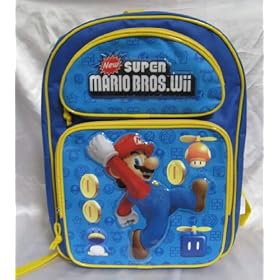 NEW Super Mario Brothers Bros Wii Large Backpack Bag: Toys & Games. Adjustable padded straps. Measures 16x12x4. Large size. Made of canvas. Main double zips compartment with 2 front zip pockets.