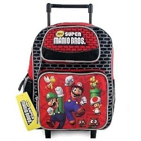 Super Mario Bros. Sparkly Roller Bookbag / Backpack Red: Toys & Games. Made of quality, durable nylon/polyester material.
