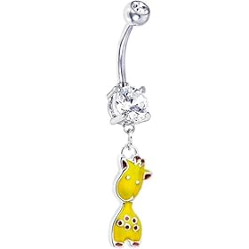 Surgical Steel Baby Giraffe Belly Ring: Jewelry. Animal body jewelry crafted with a surgical steel curved barbell.. Adorn your navel with this cute giraffe belly button ring. Specifications: 14 Gauge (1.6mm), 7/16 inch (11mm), 316L Surgical Grade Stainless Steel, Lead and Nickle Free Charm.