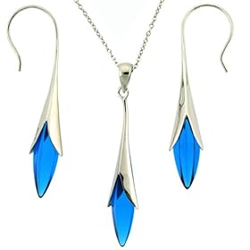 Silver Swarovski Crystal Blue Aquamarine Birthstone Necklace Earrings Jewelry Set in Gift Box Bucasi SALE: Jewelry