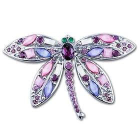Swarovski Crystal Purple Abdomen Dragonfly Brooches And Pins: Pugster: Jewelry. Pugster created each brooch for people who love high quality handcrafted jewelry with a price that is sure to make you smile. Use a brooch to accessorize your favorite outfit or spice up apparel that just needs some extra kick. The Pugster purple abdomen dragonfly Brooch is made from silver plated metal, accented with purple crystal abdomen and Czech stone wing. This Pugster brooch is perfect to give a fun, artistic flair to whatever it is that you are wearing. This brooch fastens securely with a metal pin clasp.