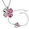 18k Gold Plated Swarovski Crystal Heart Shaped Four Leaf Clover Pendant Necklace, Earrings and Bracelet Set - Peridot Green: Dahlia: Jewelry. This set can also be purchased individually: Pendant Necklace - Peridot Green(ASIN: B005ZFXV8I), Bracelet - Peridot Green(ASIN: B005ZFXY1W), and Stud Earrings - Peridot Green(ASIN: B00606WP2E)*This set is not a Swarovski brand product.*****A free beautifully designed Dahlia jewelry box is included for an impressive gift presentation. As four leaves clover symbolizes good luck, this set is further designed with heart shaped leaves in wishing wearer the best luck with all your heart. It makes a perfect gift to your mother, valentine, and siblings.*****This set is accented with real heart shaped Swarovski crystals and small Czech crystals. With patent protected facet cuts, Swarovski crystals are optimized to be the most brilliant and are much more expensive than other crystals. Swarovski Crystals used in this set have far more facets than other crystals and reflect glamorously. *****This set is made of cooper and plated with 18K white gold to add resistance to tarnish. Even if copper is a lot more expensive than other white base metals such as iron, lead, nickel, zinc, etc., it enables intricate and delicate jewelry making while others don't. *****The mirror surface on this set has sleek and glamorous reflections and adds a luxurious fine jewelry look. It's accomplished through intricate steps which can only be done by highly experienced workers. ***** The pendant measures 0.87 inch wide and 1 inch high and the necklace is 16 inches long with a 2 inch chain tail so that you can adjust the length of the necklace to fit you. The bracelet is 6.5 inches long with a 1 inch chain tail so that the bracelet can adjust to the wearer's wrist. The earrings measure 0.47 inch wide and 0.51 inch high. Besides 30 day no-question-ask return policy, Dahlia also offers Quality Guarantee to ensure your risk free shopping experience (Restriction applies, see our website for more details).