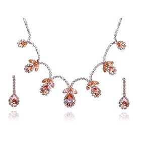 June Topaz Loop Flower Swarovski Crystal Rhinestone Dangle Earring Necklace Set: Jewelry