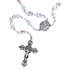 Swarovski Crystal Rosary Beads with Sterling Silver Center Medal, Crucifix and Links (Single Caps): Jewelry. This elegant rosary features gorgeous Swarovski Crystal beads, Sterling Silver center medal, and a sterling silver crucifix all connected by finely crafted sterling silver links.