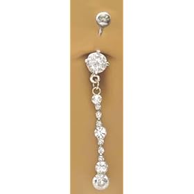 Cz Swarovski Clear gem Long Strand Dangle Belly Navel Ring body jewelry pierc...: Jewelry. This is for 1 brand new belly ring , 14 gauge, 3/8 inch long or 10mm, bar is made of 316L Surgical Stainless Steel .