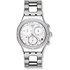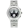 Swatch Mens YCS511G Dreamwhite Watch: Swatch: Watches. A date window sits at the three o'clock and tiny silver indices mark the seconds around the dial. Brilliant white and silver make the Swatch Men's Dreamwhite Watch an ideal choice for adding a little style to your everyday wear. The round silver stainless steel bezel is detailed with sparkling crystals drawing the eye to the white dial face. Under the clear mineral window, three silver-toned subdials and large Arabic numerals at the four, eight, and 12 o'clock position are easy to read against the white background. The white and silver-toned link bracelet is held securely in place by a fold-over clasp.