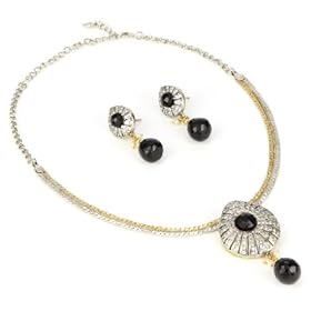 Taara Mughal Collection inch Silver, Gold, Onyx Necklace and Earrings Set: Jewelry. This image of reflection can be seen in many of her pieces, especially the jewelry featuring glass and mirror work.Each Taara piece is designed to be worn as a statement piece by itself. Megha Jain started Taara in 2009. Tired of the long hours at Morgan Stanley and wanting to explore her creative side, Megha took a leap of faith and moved to Hong Kong, China, to pursue a different career path. Taara is an offshoot of a small company that was founded by Megha's aunt, Kalpana Jain, in India. Wanting to revamp the company, design, and clientele, Megha saw an opportunity and took the plunge. This is how Taara was born.Taara comes from the word sitara, which means stars in Sanskrit. This image of stars is reflected in many of the pieces. The look and feel of the collection brings the wearer back to the Mughal Empire, a time in history where opulence and fantasy radiated throughout the area. Each piece resembles what kings and queens wore in Rajasthan during that era. The stones are sourced in Jaipur and Udaipur, India, and are set in silver with an antique finish.Megha is especially inspired by Udaipur, also known as The City of Lakes. The many lakes found around Udaipur reflect the beautiful palaces and buildings that encompass the city; the bright colors situated against the water are stunning. Lake Pichola is one of Megha's favorite lakes, as the contrast of the blue lake and the white buildings is ethereal. Megha's collections include rings, earrings, necklaces, bracelets, and pendants.