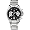 TAG Heuer Mens CAV511B.BA0902 Grand Carrera Chronograph Calibre 17 RS Watch: Tag Heuer: Watches. The dial also delivers a date display window at the 6 'o clock position and two chronograph sub-dials with 30-minute and 60-second displays. An exquisite timepiece dressed in stainless steel, the TAG Heuer Men's Grand Carrera Chronograph Calibre 17 RS Watch is a classy chronograph of the highest caliber. Its classy demeanor begins with a 43.5mm stainless steel case and a fixed stainless steel bezel, which features a tachymeter with black markers. The right side of the watch features a guarded stainless steel screw-down fluted crown with two pushers. The circular silver guilloche dial, which is protected by a scratch-resistant sapphire crystal, offers luminous silver-toned index hour markers and hands powered by Swiss automatic movement. A stainless steel bracelet straps the watch to your wrist, while a luxurious hidden fold over clasp with double push button makes sure it stays there.