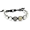 Tai Rose Gold Hammered Ball with Pave Swarovski Crystal Ball Bracelet: Jewelry. A series of rose gold-plated balls tie together with a black braided cord and Swarovski pave ball accents. A luxe beaded bracelet is this season's casual, glam style. Wearing this stunning piece by Tai is the is the perfect way too add some sparkling bling to your everyday look. The lustrous style of this bracelet pairs well with all accessories.