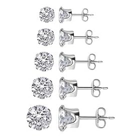 TDEZ-ROUND-SET Nickel Free 3mm 4mm 5mm 6mm and 7mm Round Sparkling Clear Cubic Zirconia Stud Earrings Set: Jewelry. High Quality Sparkling Cubic Zirconia Round Stud Earrings Set made in Sterling Silver.