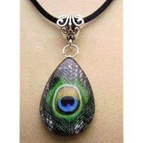 Teardrop Peacock Glass Tile Pendant, Necklace: Everything Else