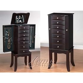 Teresa Jewelry Armoire by Acme Furniture: Home & Kitchen. The green sueded fabric lining and metal drawer pulls add a sense of refinement and luxury. If timeless appeal is what you seek, then you will appreciate this understated, elegant jewelry armoire. Dimensions:4.80? Some assembly may be required.