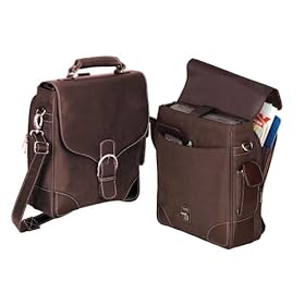 The Advisor Vertical Messenger Bag (Bellino): Office Products. Beneath the flap, a spacious open pocket contains additional pockets for a palm pilot, pens and cards. Made of suede-like brushed twill and full grain cowhide leather, outlined in a cream saddle stitch, this is the ultimate case. Inside this lightweight case, the main compartment features a removable laptop sleeve, to allow for more room when not carrying your computer, and extra pockets for accessories. Rear zip compartment boasts an accordion file. Outside features include a phone pocket on the side, soft-grip handle and detachable shoulder strap.