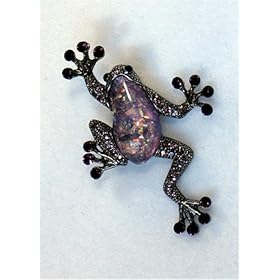 Purple Frog Brooch: Jewelry. Purple Austrian crystals adorn this frog's legs and toes while his body is a shimmery opalescent lavender crystal.