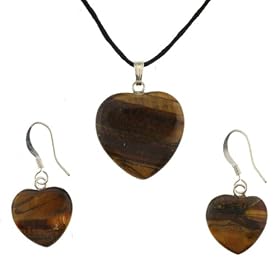 Tiger Eye Heart Pendant and Earring Set - Pendant 22mm, Earrings 15mm - Adjustable Cord Necklace: Jewelry. Tiger Eye Heart Pendant and Earring Set - Pendant 16mm x 22mm, Earrings 11mm x 16mm - Adjustable Cord Necklace.