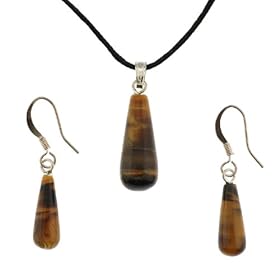 Tiger Eye Tear Drop Pendant and Earring Set - Pendant (8x20mm), Earrings (6x17mm) - Adjustable Cord Necklace: Jewelry. Tiger Eye Tear Drop Pendant and Earring Set - Pendant (8x20mm), Earrings (6x17mm) - Adjustable Cord Necklace.
