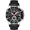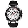 Tissot Mens T0484172705700 T-Race Black Chronograph Dial Watch: Tissot: Watches. The dial also features three chronograph sub-dials and a date display window at the 3 'o clock position. Tissot is no slouch on the world stage. Their timepieces have been chosen as official timekeepers for world championships in cycling, motorcycling, fencing and ice hockey. Also Tissot is currently the official watch and timekeeper of NASCAR. This watch is no exception. The Tissot Men's T-Race Black Chronograph Dial Watch begins with a 45mm stainless steel case, a black-toned bezel and prominent pushers with a protected crown on the right side of the case. These elements surround a bold black dial, which is protected by a scratch-resistant sapphire crystal and features silver-toned stick and Arabic hour markers and hands powered by precise Swiss quartz movement. The watch's black rubber strap gives this exceptional watch a sporty feel as it reaches out to the push-button deployment clasp.