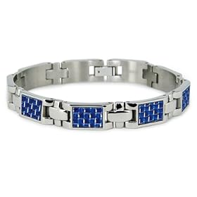 Titanium Mens Link Bracelet with Blue Carbon Fiber Accents (10mm Wide) 7.75 Inches: West Coast Jewelry: Jewelry.