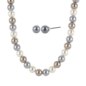 Grey Tonal Simulated Pearl Earring and Necklace Set (6mm), 18.5: Jewelry. The featured pearls are patterned with a single knot that protects their lustrous surface. Employ an accessory that will match any elegant yet feminine style with the Grey Tonal Simulated Pearl Earrings and Necklace Set. A pattern of grey-toned simulated pearls reveal a classic 6mm round size throughout the 18.5-inch strand. Secured with a lobster-claw clasp, this necklace has the power to match a variety of outfits.