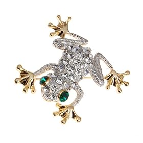 Two Tone Clear Rhinestones Frog Brooch Pin: Jewelry. This is an adorable two tone clear rhinestones frog brooch pin.