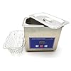 Tovatech 100E15H 7159 Elmasonic E Ultrasonic Cleaner, 5.9 inch Length x 5.4 inch Width x 3.9 inch Depth, 0.5 Gallons Tank Volume: Industrial & Scientific. More power - faster cleaning. Elmasonic E Ultrasonic cleaning units. Elmasonic Ultrasonic cleaner - optimum cleaning, ultimate convenience. Designed to make work easy. Durable and economic ultrasonic cleaners. Auto power off: safety feature that automatically cuts off power after 12 hours of continuous operation. Dry run proof ceramic heaters: the ceramic heaters will not burn out even if the tank is run dry. A revolution in cleaning technology. The Elmasonic E has the sweep mode function. The sweep mode shifts the frequency of the sound waves so that your jewelry and gems will be uniformly cleaned. The combination of simple control settings and a choice of a wide variety of cleaning agents allow for many items of varying durability to be cleaned from stainless steel, aluminum, copper, brass, alloy, and glass. Cleaning plastic and metal implements used in nail salons and manicure parlors can be accomplished quickly and thoroughly in an ultrasonic cleaner followed by disinfecting, sanitizing and storage. Elmasonic E is ideal for rapid and thorough sweep mode cleaning of metal, glass, or plastic parts and instruments. Tank volume: 0.5 gallons.